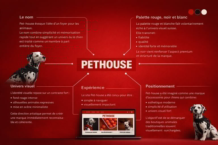 Le projet Pet-house a été pensé comme une marque identifiable et mémorable, capable de se distinguer dans un marché très concurrentiel.
