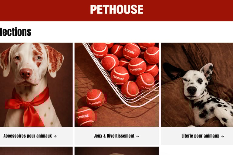 Le site Pet-house a été conçu comme une boutique en ligne simple et intuitive, permettant de présenter les produits tout en valorisant l’identité de la marque.