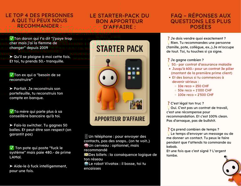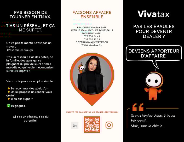 Dans le cadre de mon activité chez Vivatax, j’ai conçu une campagne destinée à recruter des apporteurs d’affaires parmi les étudiants et les jeunes actifs.