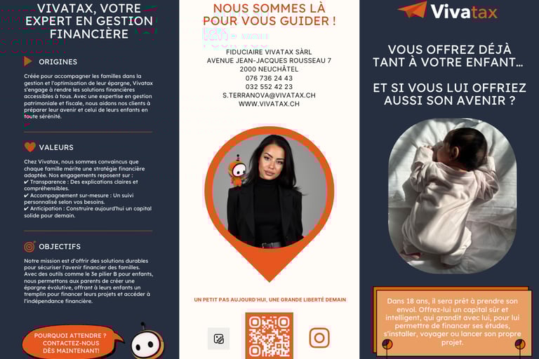 Plusieurs supports de communication ont été conçus afin d’améliorer la visibilité et la compréhension des services proposés par Vivatax.